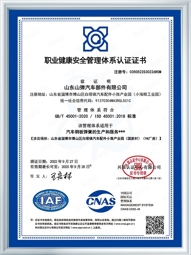 职业健康管理体系证书 -